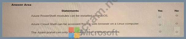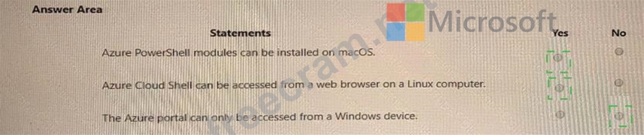 For each of the following statements, select Yes if the statement is true. Otherwise, select No.