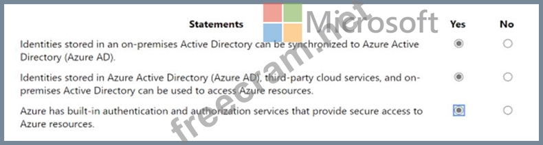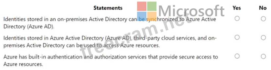 For each of the following statements, select Yes if the statement is true. Otherwise, select No.