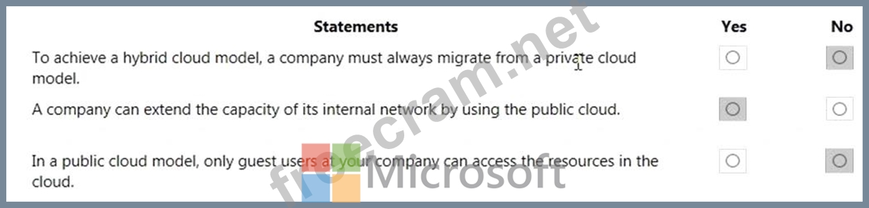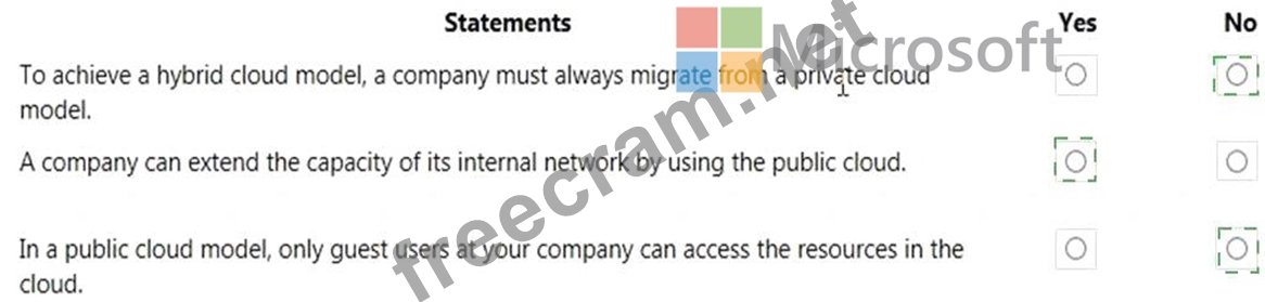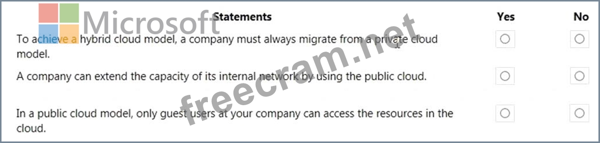 For each of the following statements, select Yes if the statement is true. Otherwise, select No.