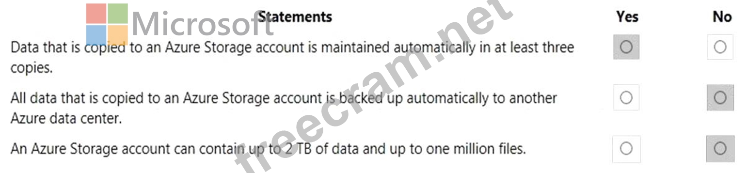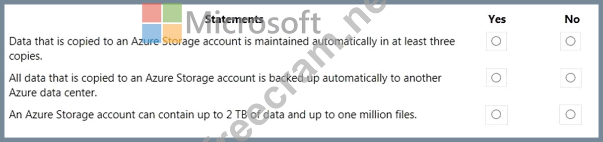 For each of the following statements, select Yes if the statement is true. Otherwise, select No.