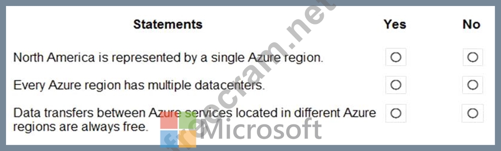 For each of the following statements, select Yes if the statement is true. Otherwise, select No.
