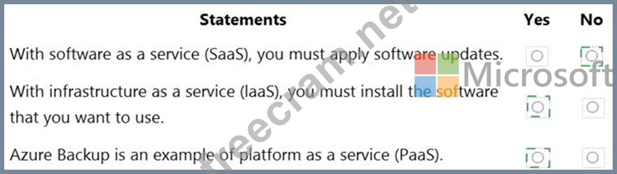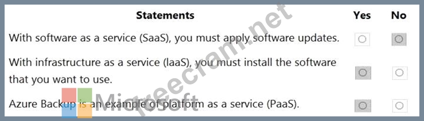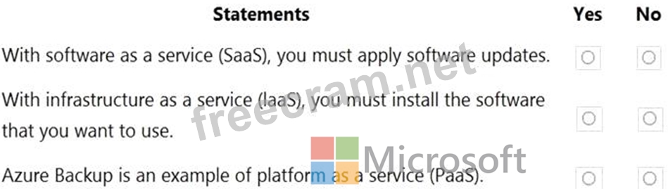 For each of the following statements, select Yes if the statement is true. Otherwise, select No.