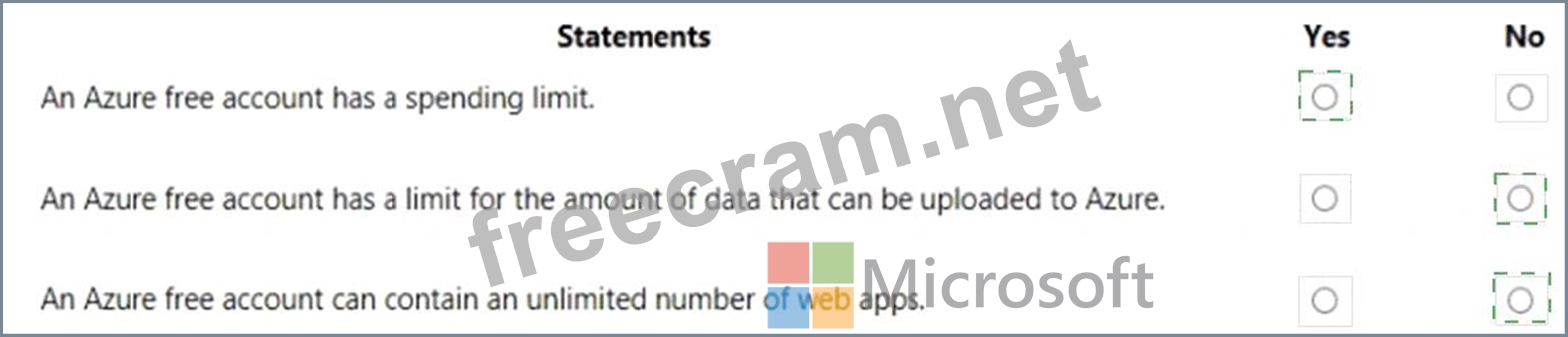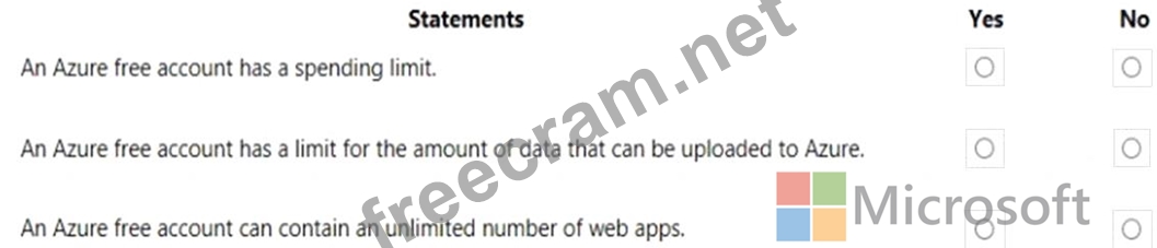 For each of the following statements, select Yes if the statement is true. Otherwise, select No.