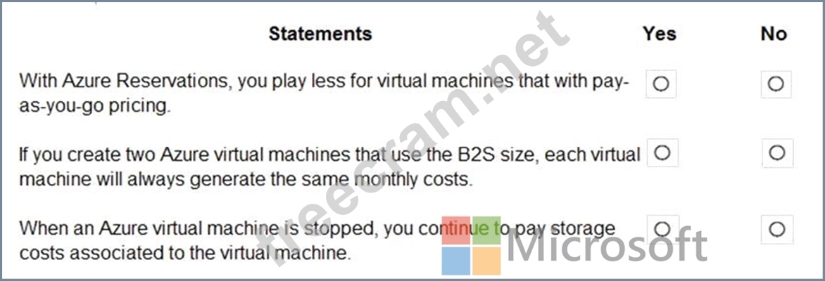 For each of the following statements, select Yes if the statement is true. Otherwise, select No.