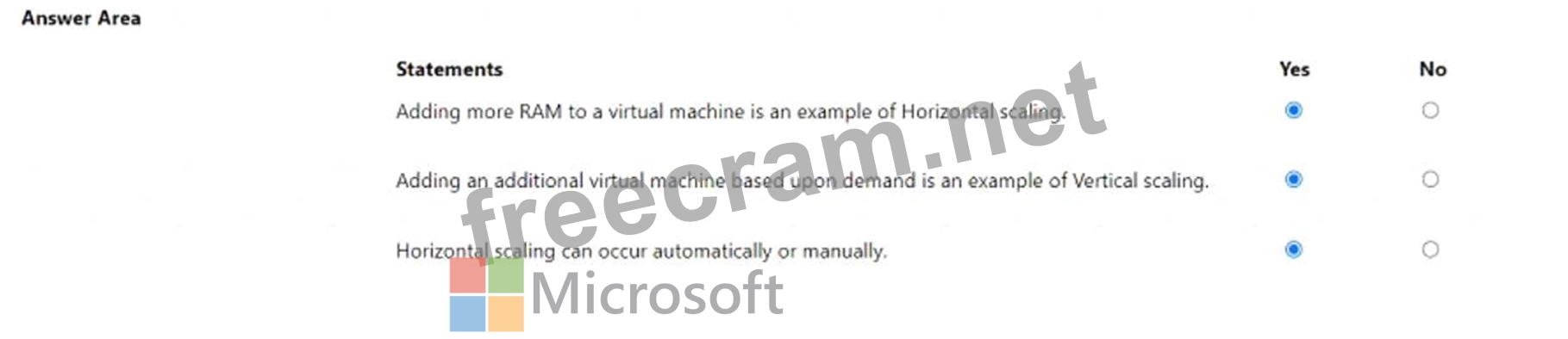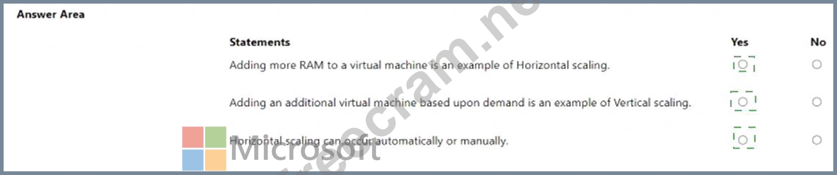 Question 217: For each of the following statements, select Yes if the stat...