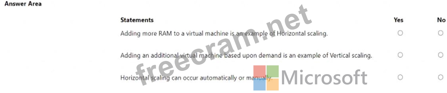 For each of the following statements, select Yes if the statement is true. Otherwise, select No.