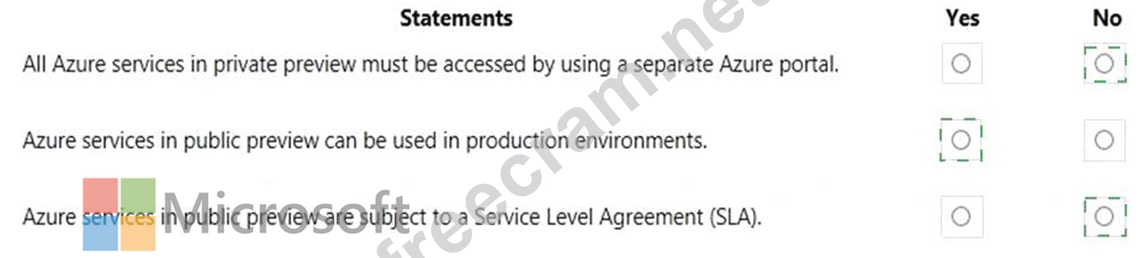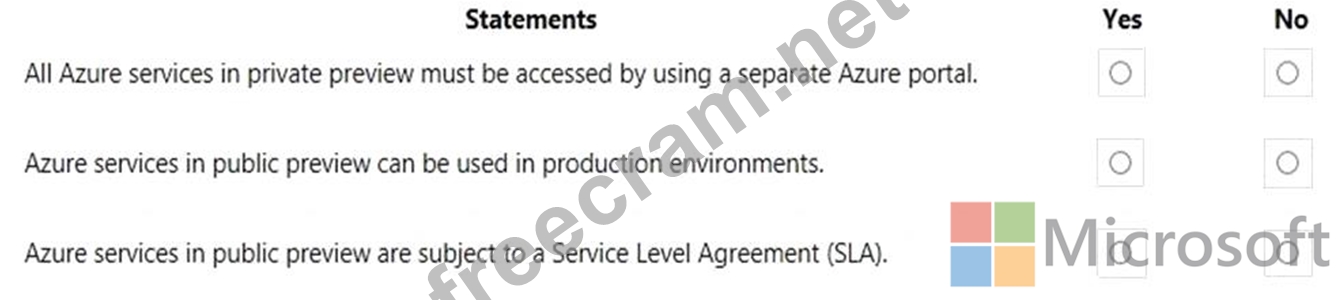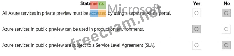For each of the following statements, select Yes if the statement is true. Otherwise, select No.