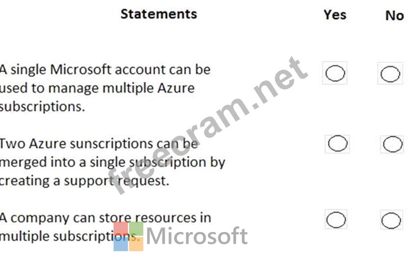 For each of the following statements, select Yes if the statement is true. Otherwise, select No.