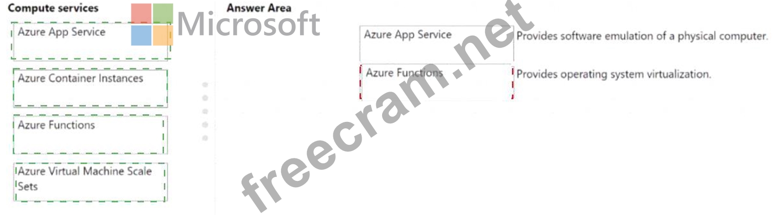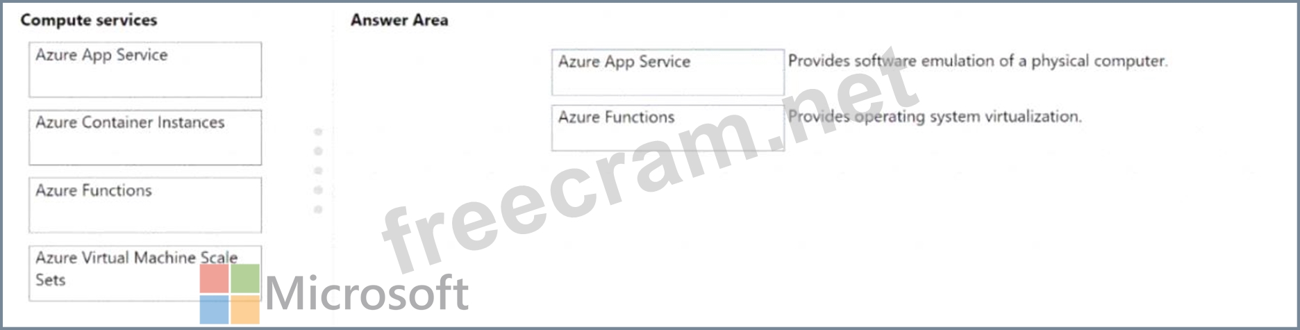To answer, drag the appropriate compute service from the column on the left to its description on the right Each service may be used once, more than once, or not at all.