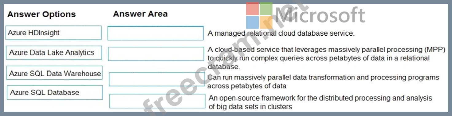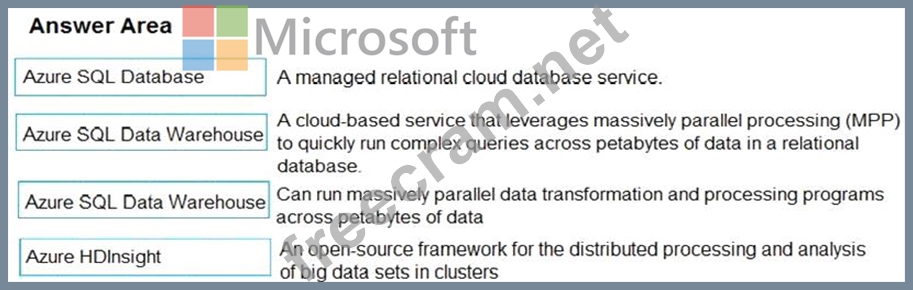 Instructions: To answer, drag the appropriate Azure service from the column on the left to its description on the right. Each service may be used once, more than once, or not at all.