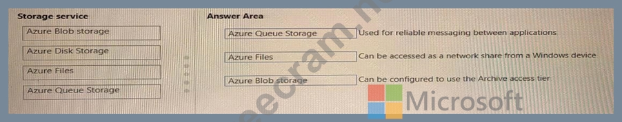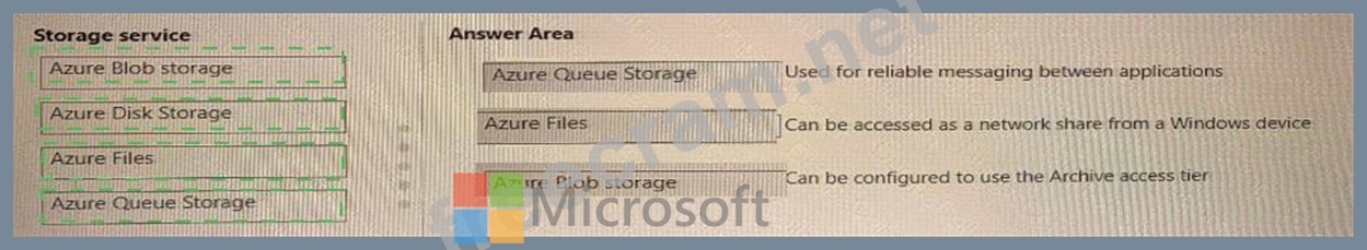 Question 177: Match the Azure storage services to the appropriate descript...