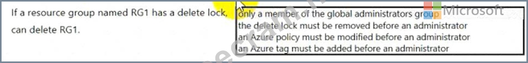 Question 179: You create a resource group named RG1 in Azure Resource Mana...