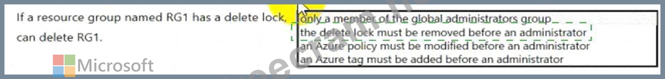 Question 66: You create a resource group named RG1 in Azure Resource Mana...
