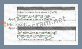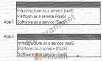 You plan to use Azure to host two apps named App1 and App2 The apps must meet the following requirements