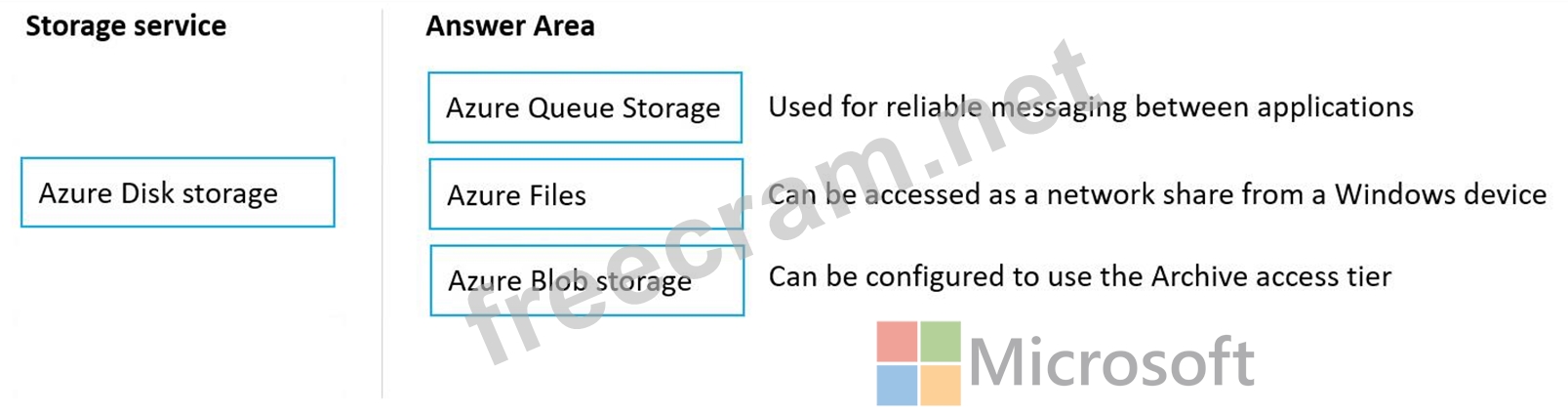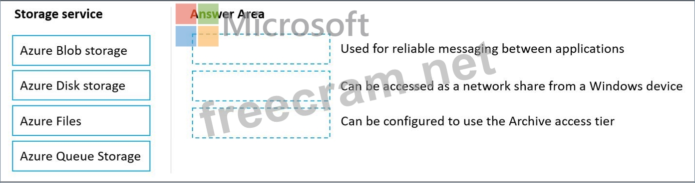 Question 174: Drag and Drop Question Match the Azure storage services to t...