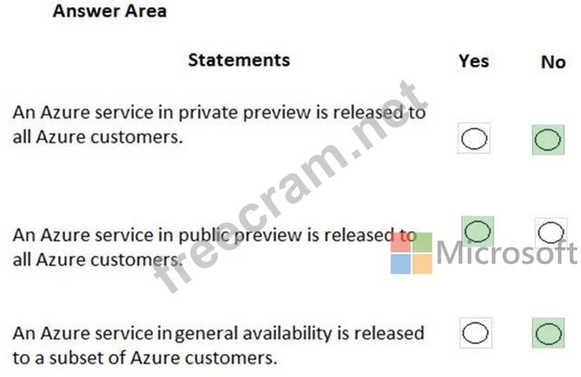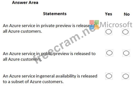 For each of the following statements, select Yes if the statement is true. Otherwise, select No.