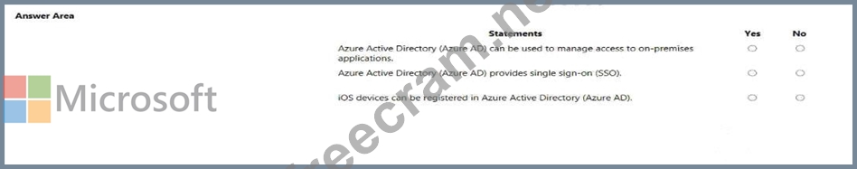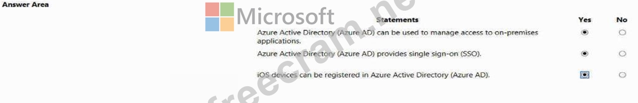 For each of the following statements, select Yes If the statement is tine. Otherwise, select No. NOTE: Each collect selection is worth one point.