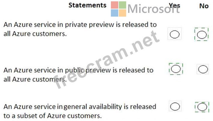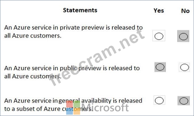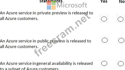 For each of the following statements, select Yes if the statement is true. Otherwise, select No.