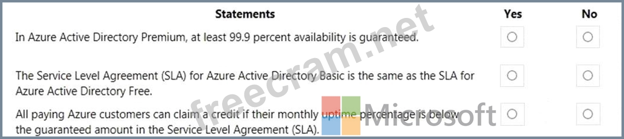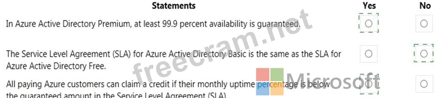 For each of the following statements, select Yes if the statement is true. Otherwise, select No.