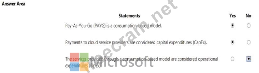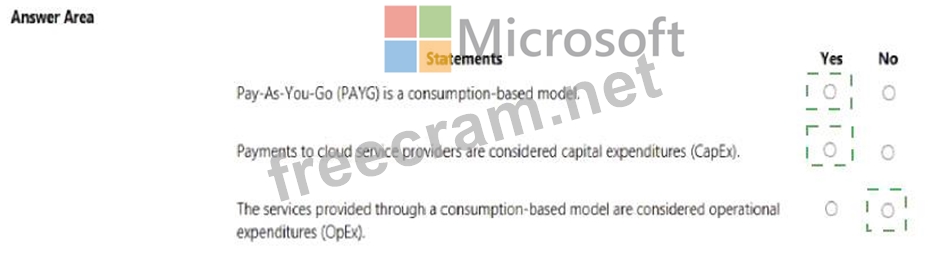 For each of the following statements, select Yes if the statement is true. Otherwise, select No.