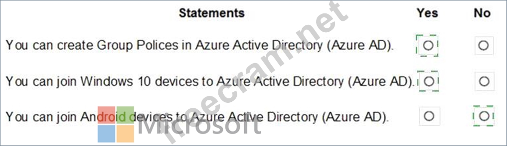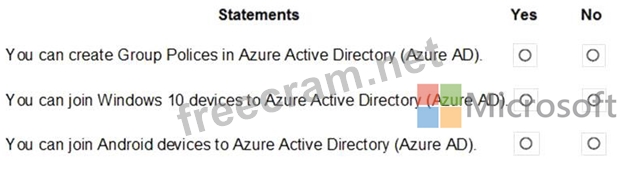 For each of the following statements, select Yes if the statement is true. Otherwise, select No.