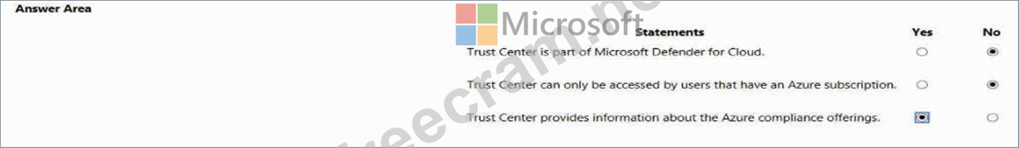 For each of the following statements, select Yes if the statement is true. Otherwise, select No. NOTE; Each correct selection is worth one point.