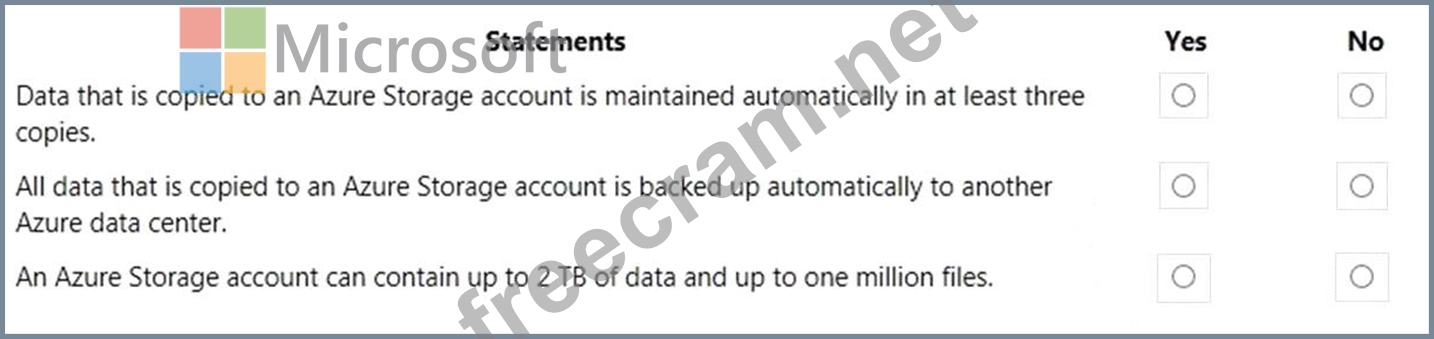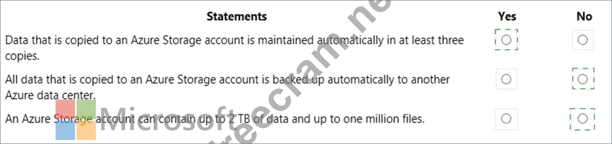 Question 86: How many copies of data are maintained by an Azure Storage a...