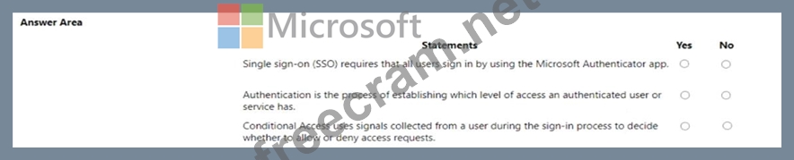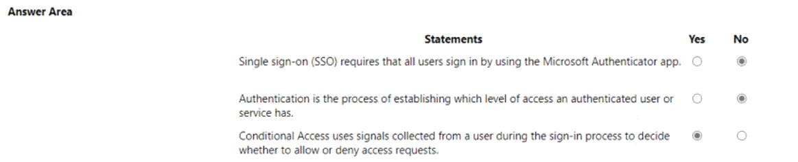 For each of the following statements, select Yes if the statement is true. Otherwise, select No. NOTE: Each correct selection is worth one point.