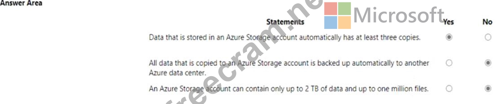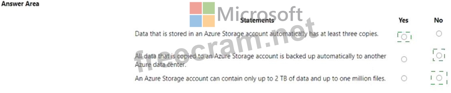 Question 86: How many copies of data are maintained by an Azure Storage a...