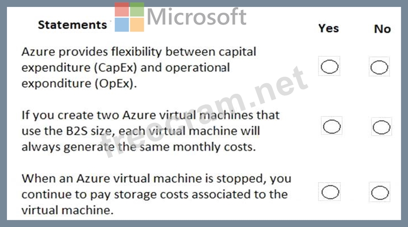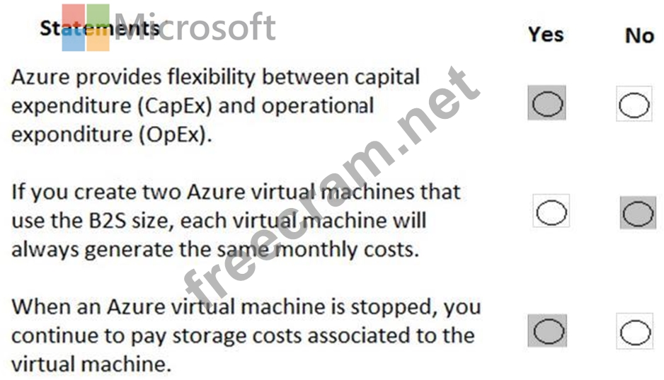 For each of the following statements, select Yes if the statement is true. Otherwise, select No.