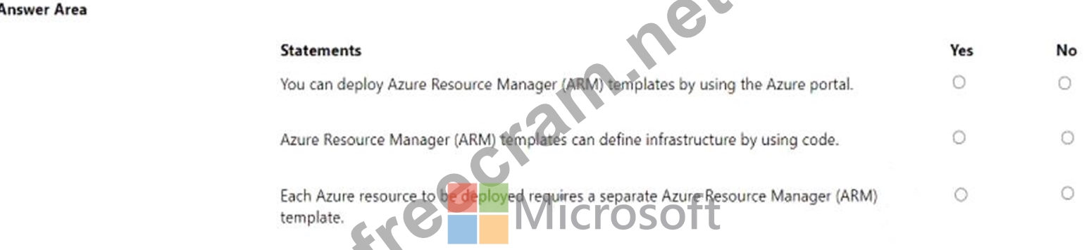 For each of the following statements, select Yes if the statement is true. Otherwise, select No.