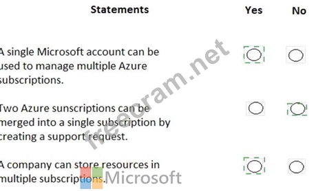 For each of the following statements, select Yes if the statement is true. Otherwise, select No.