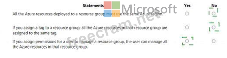 For each of the following statements, select Yes if the statement is true. Otherwise, select No.