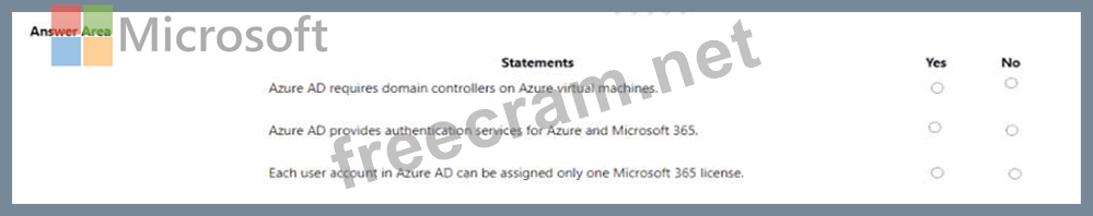 For each of the following statements, select Yes if the statement is true. Otherwise, select No.