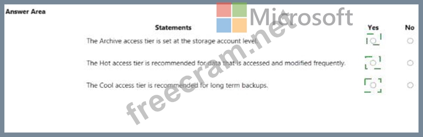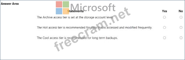 For each of the following statements, select Yes if the statement is true. Otherwise, select No. NOTE: Each correct selection is worth one point.