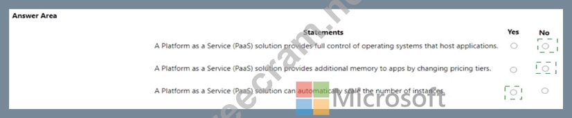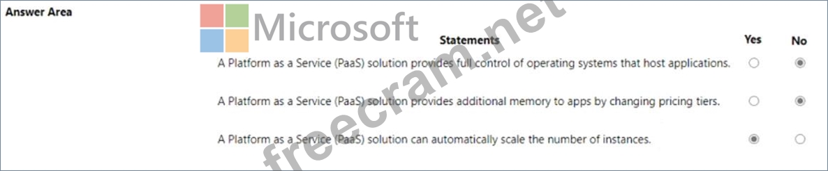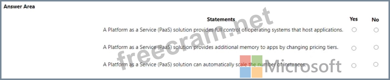 For each of the following statements, select Yes if the statement is true. Otherwise, select No. NOTE: Each correct selection is worth one point.