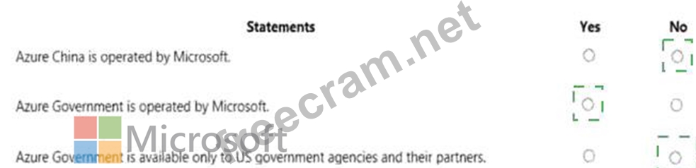For each of the following statements, select Yes if the statement is true. Otherwise, select No.