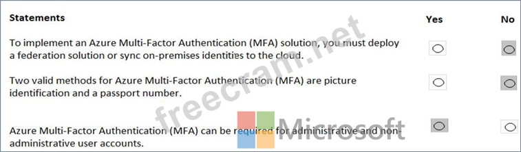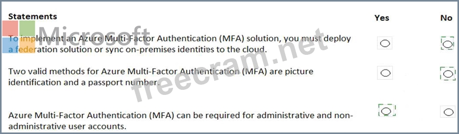 For each of the following statements, select Yes if the statement is true. Otherwise, select No.