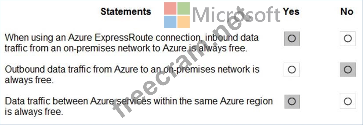 For each of the following statements, select Yes if the statement is true. Otherwise, select No.