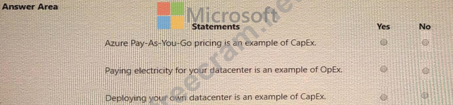 For each of the following statements, select Yes if the statement is true. Otherwise, select No. NOTE: Each correct selection is worth one point.