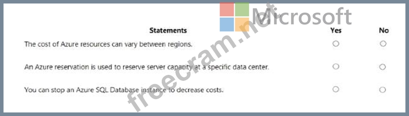 For each of the following statements, select Yes if the statement is true. Otherwise, select No.