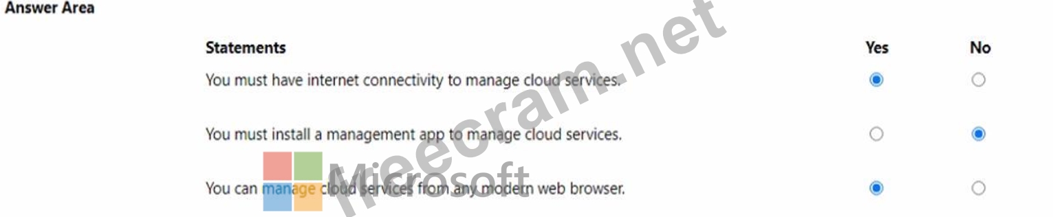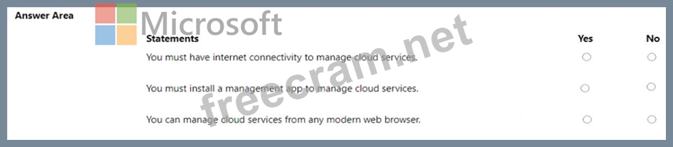 For each of the following statements, select Yes if the statement is true. Otherwise, select No.