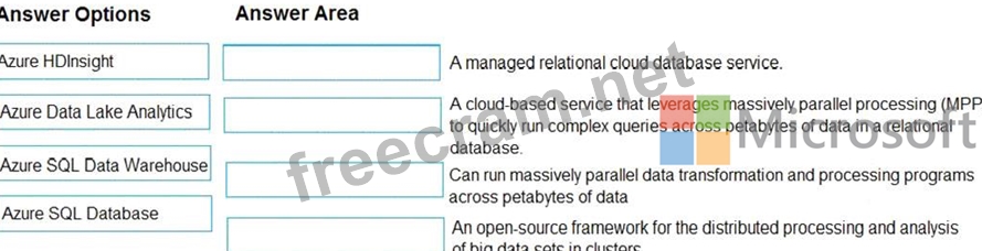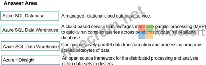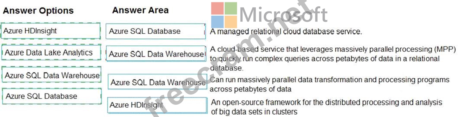Instructions: To answer, drag the appropriate Azure service from the column on the left to its description on the right. Each service may be used once, more than once, or not at all.