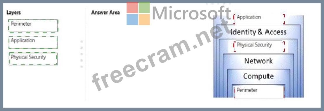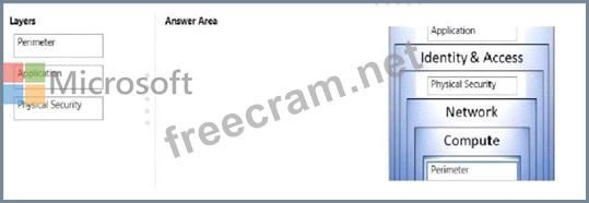 You need to complete the defense-in-depth strategy used in a datacenter, What should you do? To answer, drag the appropriate layers to the correct positions in the model. Each layer may be used once, more than once, or not at all.