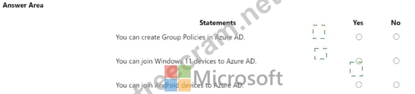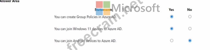 For each of the following statements, select Yes if the statement is true. Otherwise, select No. NOTE: Each correct selection is worth one point.