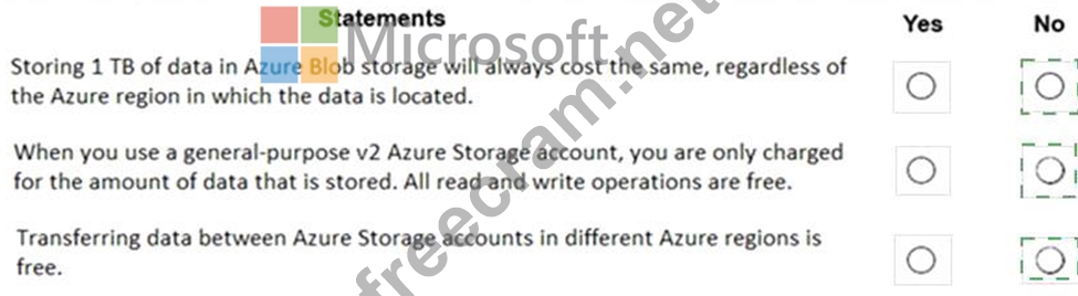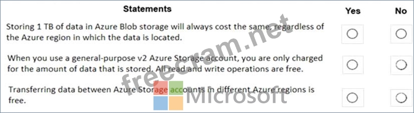 For each of the following statements, select Yes if the statement is true. Otherwise, select No.