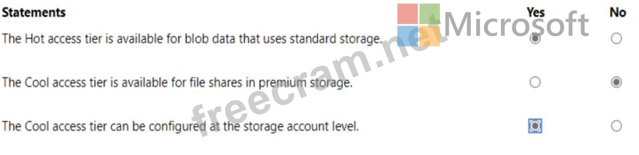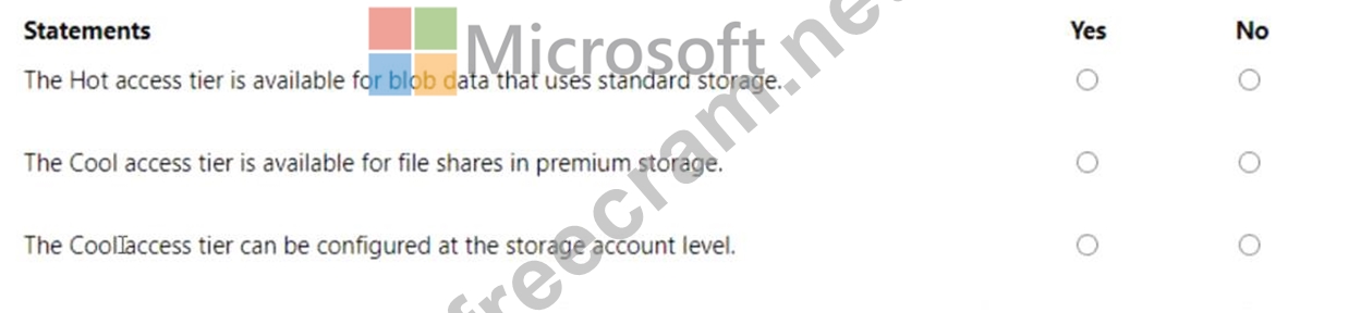 For each of the following statements, select Yes if the statement is true. Otherwise, select No.