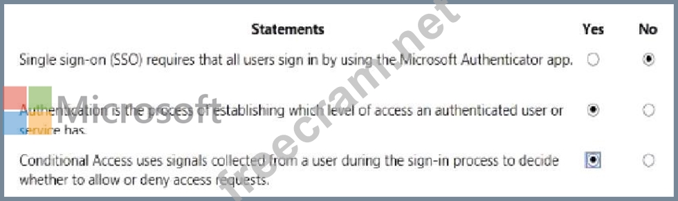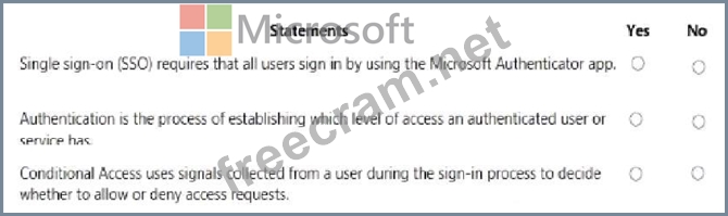 For each of the following statements, select Yes if the statement is true, Otherwise, select No.