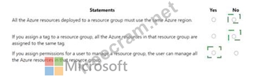 For each of the following statements, select Yes if the statement is true. Otherwise, select No.