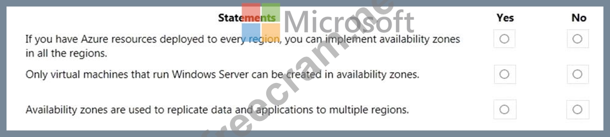 For each of the following statements, select Yes if the statement is true. Otherwise, select No.